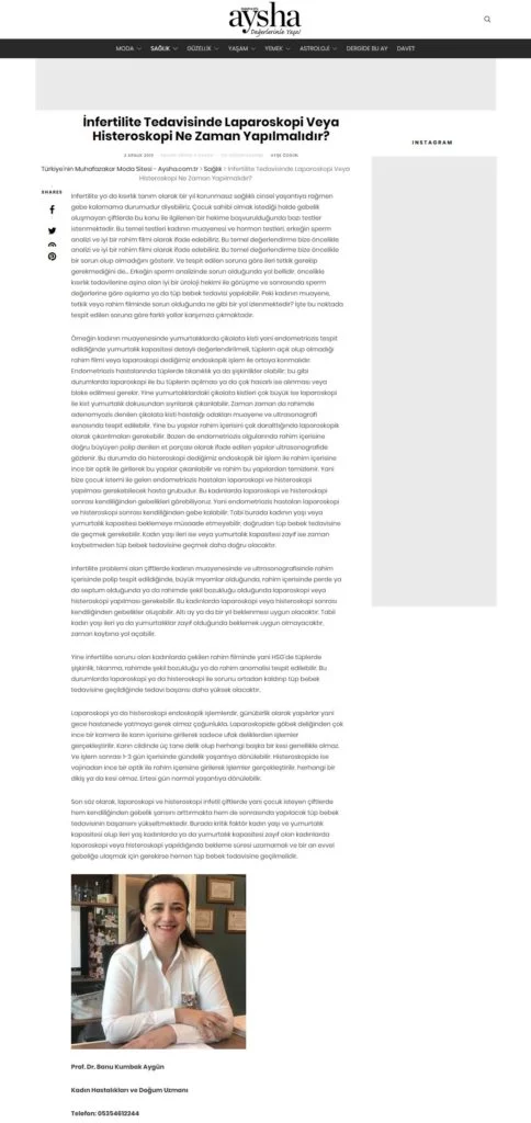Aysha: İntertilite Tedavisinde Laparoskopi veya Histeroskopi Ne Zaman Yapılmalıdır?